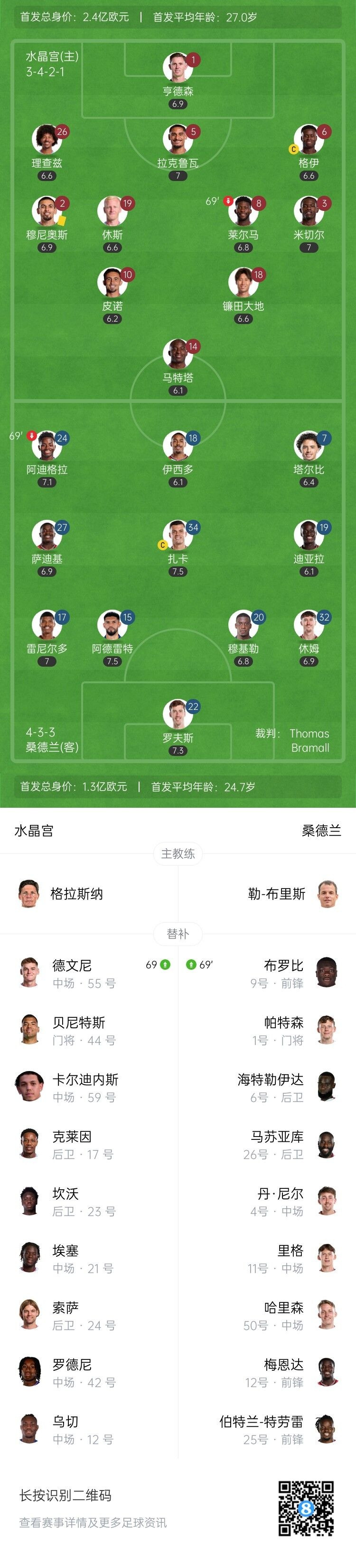 ngày 13 tháng 9 lúc 22:00 tối ngày 13 tháng 9, ở vòng thứ tư của Premier League, Crystal Palace đã thi đấu với Sunderland tại sân vận động Selhurst Park. Trong nửa đầu, Pino đã mất một phát bắn một chọi một. Trong hiệp hai, Kamada Dadi đã bắn từ một thời gian dài để đe dọa, và Rovs liên tục cứu chủ của mình. Trò chơi kết thúc, Crystal Palace 0-0 Sunderland. Sau trận đấu này, Crystal Palace đứng thứ bảy với 1 chiến thắng, 3 trận hòa, 6 điểm, trong khi Sunderland đứng thứ năm với 2 chiến thắng, 1 trận hòa, 1 trận thua, 7 điểm.